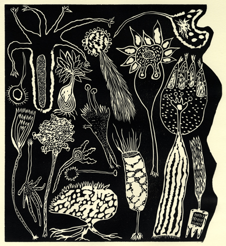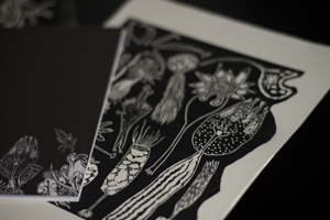 Linolschnitte für das Cover zum Ausstellungskatalog